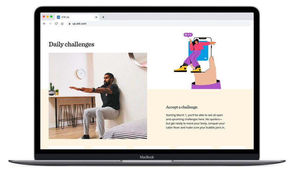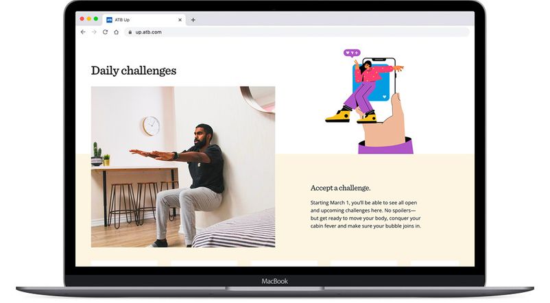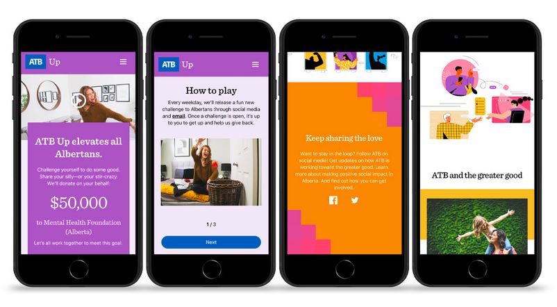 Participants complete the challenges and post to social media with the campaign hashtag #ATBUp. For every video or image posted or shared on Instagram, Twitter and Facebook, ATB will donated $1 to Mental Health Foundation (Alberta).
