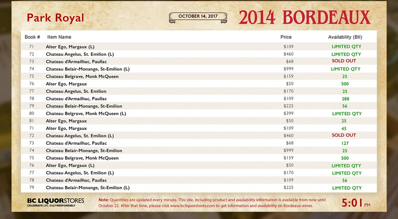 Last year’s Bordeaux release sold about $1.9 million worth of wine in the first two days. This year’s release was even more popular and wildly successful with at least that much sold in the first few hours. More than 3,000 cases of Bordeaux are available in this year’s release. The most expensive wine is the Château Pétrus, Pomerol, for $3,000 (only 42 bottles available in British Columbia).