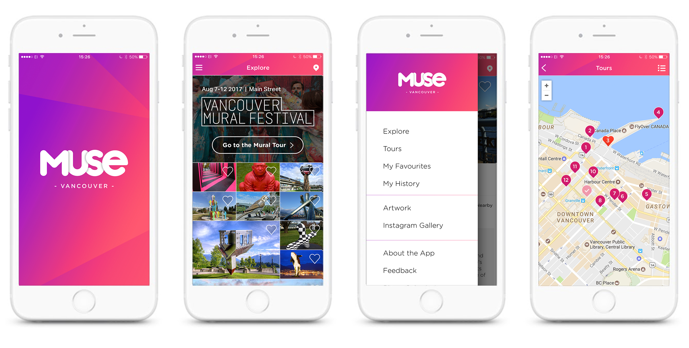Muse Art Tour app (codenamed “VanGo”) was a project that had been initiated as an Open Data Initiative community project with the City of Vancouver by Microsoft Canada’s Excellence Centre. Intergalactic was brought in to partner on the project to streamline the feature set and co-develop the code so that the team could launch the app. With multiple stakeholders, our team was able to bring everyone together and build a MVP version that brought public art to your fingertips. Our team reworked the branding and UX / UI of the app to bring new life to the previous work of the student initiative so that the minimal core functions of the project were able to built in the short time frame required. We supplemented the photography of the public data set and implemented tours and contextual information to help improve the experience.
